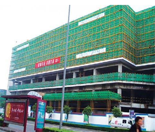 (1)腳手架外側防護須使用合格的密目式安全網封閉。外架上應設置公司標志(“公司”橫幅)和宣傳標語。保證外架協調美觀,體現企業(yè)特色。